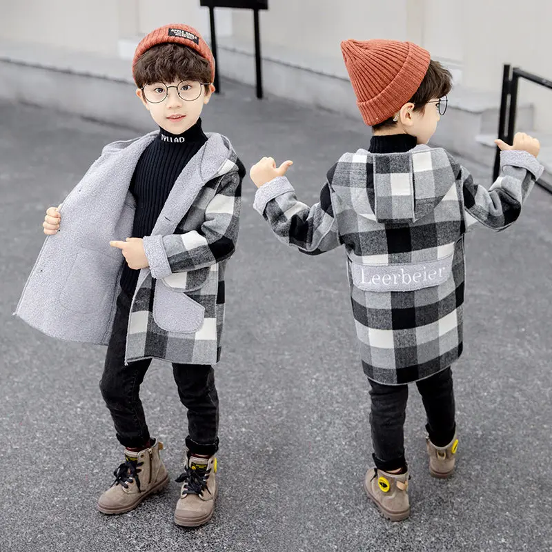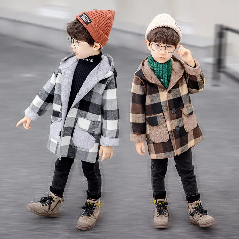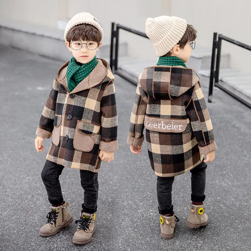 Kids Autumn Winter Wool Coat for Boys 2019 Woolen Overcoat Kids Plaid Casual Woollen Outerwear Todd