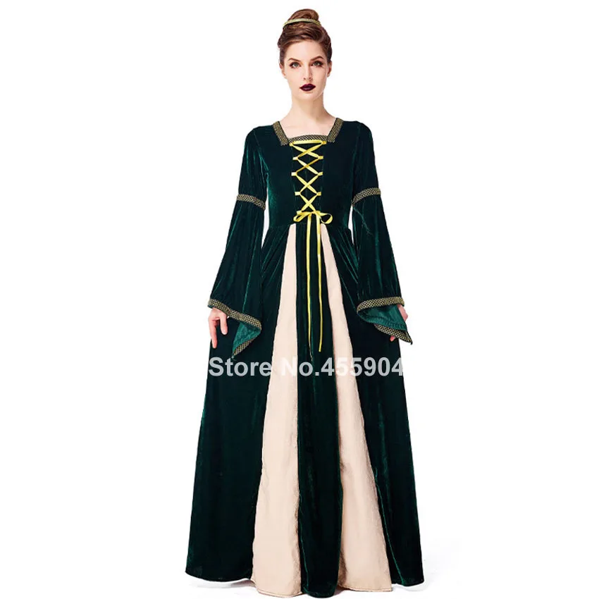 Review Green Elegant Long Propm Party Dress for Women Medieval Cosplay Costumes Halloween Renaissance Fami